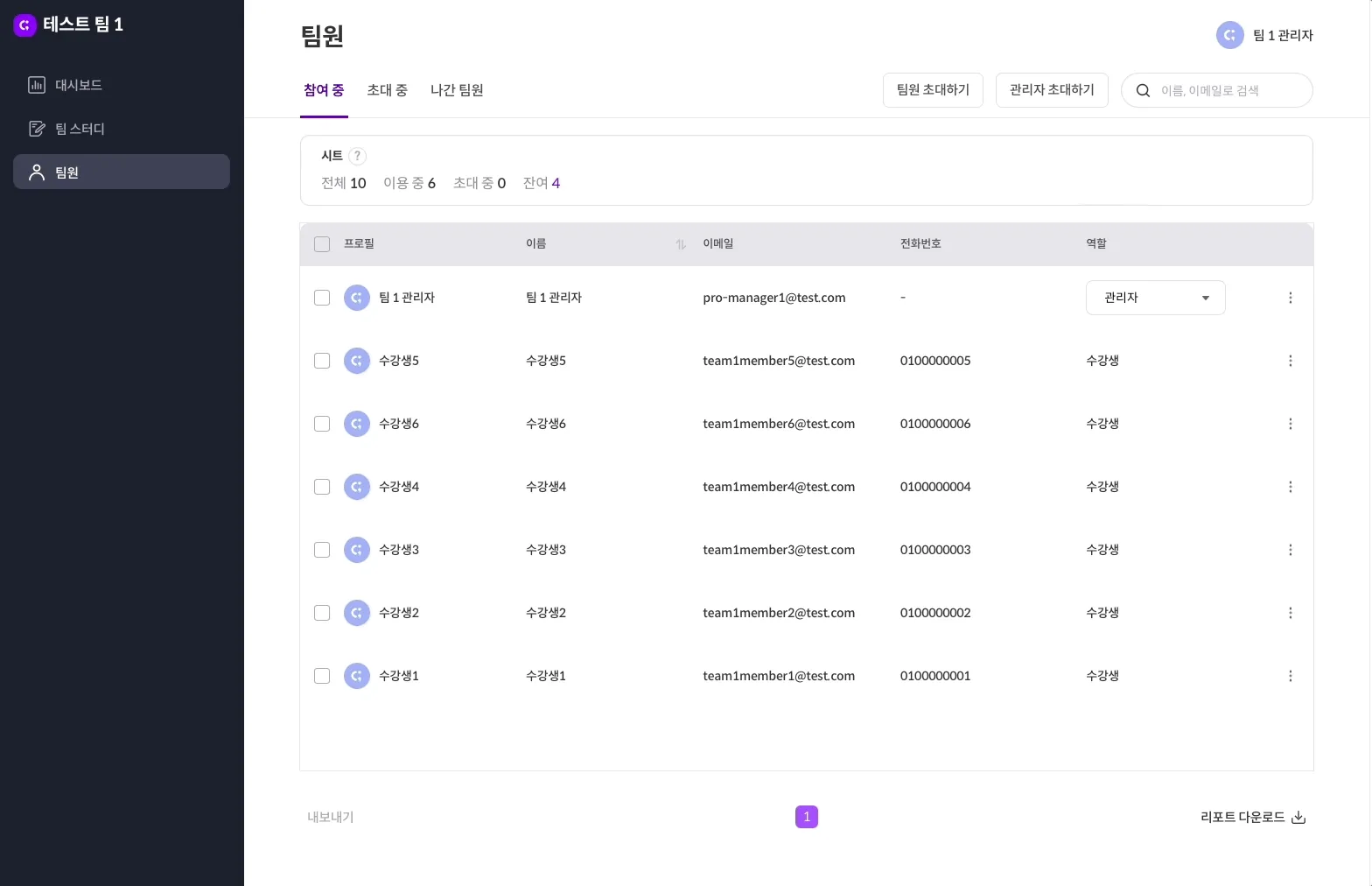 팀 관리자 페이지의 팀원 메뉴로 이동합니다.
